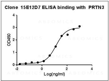 PRTN3 (Proteinase 3) is a protein coding gene. Belongs to the peptidase S1 family. Elastase subfamily. Contains 1 peptidase S1 domain. Among its related pathways are Immune System and Cytokine Signaling in Immune system. Polymorphonuclear leukocyte serine protease that degrades elastin, fibronectin, laminin, vitronectin, and collagen types I, III, and IV (in vitro) and causes emphysema when administered by tracheal insufflation to hamsters. Diseases associated with PRTN3 include Wegener Granulomatosis and Rapidly Progressive Glomerulonephritis. Human PRTN3 Antibody (15E12D7), mAb, Mouse is produced from a hybridoma resulting from the fusion of SP2/0 myeloma and B-lymphocytes obtained from a mouse immunized with recombinant human PRTN3.
