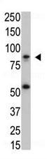 Figure 1: The anti-IKKbeta Mab (10-6610) is used in Western blot to detect IKKbeta in SK-BR3 cell lysate.