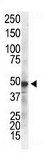 Figure 1: The anti-IKKgamma Mab (10-6611) is used in Western blot to detect IKKgamma in ZR75-1 cell lysate.
