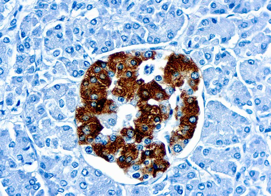 Figure 1 : Formalin fixed paraffin embedded human pancreas stained with Insulin antibody ( 10-11519).