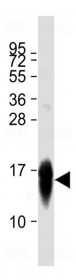Figure 1: Anti-MAP1LC3A Antibody (10-6525) at 1:5000 dilution + recombinant protein at 20 μg per lane. Secondary Goat Anti-mouse IgG, (H+L), Peroxidase conjugated at 1/10000 dilution. Predicted band size : 14 kDa.