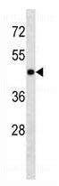 Figure 1: Western blot analysis of MAPK3 Antibody (10-6561) in MDA-MB435 cell line lysates (35μg/lane). This demonstrates the MAPK3 antibody detected the MAPK3 protein.