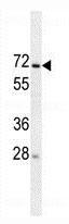 Figure 1: Western blot analysis of MIPEP Antibody (10-6543) in 293 cell line lysates (35μg/lane). This demonstrates the MIPEP antibody detected the MIPEP protein.