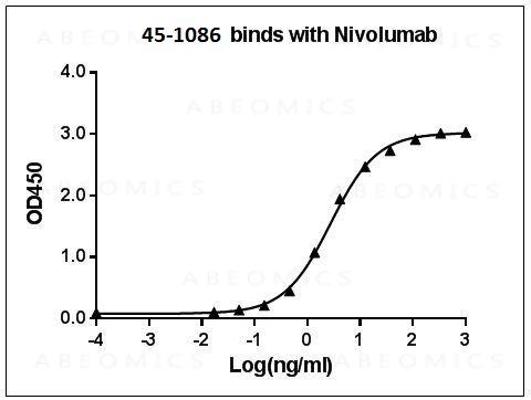 Figure-1 : ELISA binding of Nivolumab Antibody (Clone: 8G6G3D8) Nivolumab, Coating antigen: Nivolumab at 1 µg/ml, Nivolumab antibody dilution start from 1,000 ng/ml, EC50= 2.72 ng/ml.