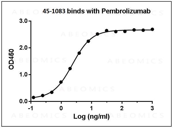 Figure-1 : ELISA binding of Pembrolizumab antibody (Clone: 1D6E10) with Pembrolizumab. Coating antigen: Pembrolizumab at 1 µg/ml. Anti-Pembrolizumab antibody dilution start from 1000 ng/ml, EC50= 2.58 ng/ml