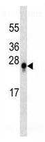 Figure 1: Western blot analysis of S100B Antibody (10-6560) in mouse liver tissue lysates (35μg/lane). This demonstrates the S100B antibody detected the S100B protein.