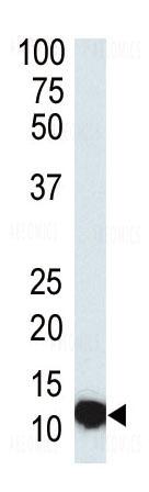 Figure 1: Western blot analysis of anti- SUMO3 Monoclonal Antibody (10-6521) in HL-60 cell line lysates (37ug/lane). SUMO3 was detected using the purified Mab.
