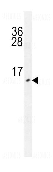 Figure 1: Western blot analysis of URM1 antibody (10-6549) in HepG2 cell line lysates (35μg/lane). This demonstrates the URM1 antibody detected the URM1 protein.