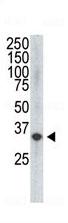 Figure 1: The anti-VEGF4 Mab (10-6512) is used in Western blot to detect VEGF4 in HDMEC cell lysate.