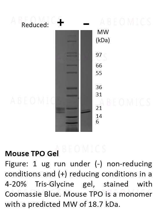 Thrombopoietin (TPO) is a growth factor that is produced by liver and kidney tissues. TPO binds the TPO receptor (CD110) to promote megakaryocyte maturation, differentiation, and the production of platelets.