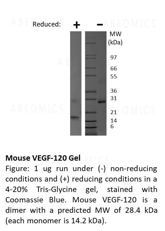 Vascular endothelial growth factor A (VEGF-A) is produced by a wide variety of cell types, including tumor and vascular cells. Â VEGF-A is a mediator of vascular growth, vascular permeability, and plays a role in stimulating vasodilation via nitric oxide-dependent pathways. Â Mouse VEGF-A has several alternatively spliced isoforms, with one being VEGF-120. Â VEGF-120 is an angiogenic factor that is expressed throughout endochondral bone development and is important during skeletogenesis.