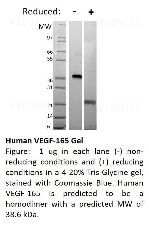 Vascular endothelial growth factor A (VEGF-A) is produced by a wide variety of cell types, including tumor and vascular cells. Â VEGF-A is a mediator of vascular growth, vascular permeability, and plays a role in stimulating vasodilation via nitric oxide-dependent pathways. Â VEGF-A has several alternatively spliced isoforms, with VEGF-165 being the most abundant. Â The VEGF-165 isoform is a secreted protein that acts on receptors VEGFR-1 and VEGFR-2 to modulate endothelial cell proliferation and angiogenesis.