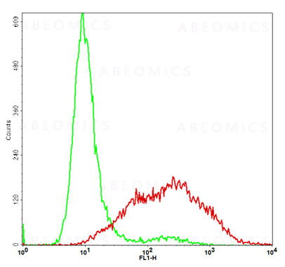 Fig-1: Detection of human PD-1 in the CHO-K1/PD-1 stable cell line by Flow Cytometry [Cell surface staining]. CHO-K1 cells (Green); CHO-K1/PD-1 cells (Red).
