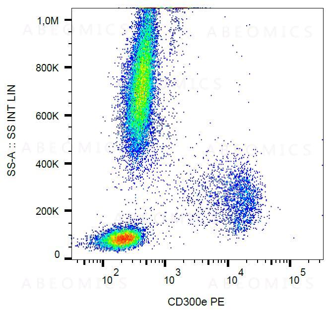 Figure 1: Surface staining of human peripheral blood with anti-human CD300e (UP-H2) PE.