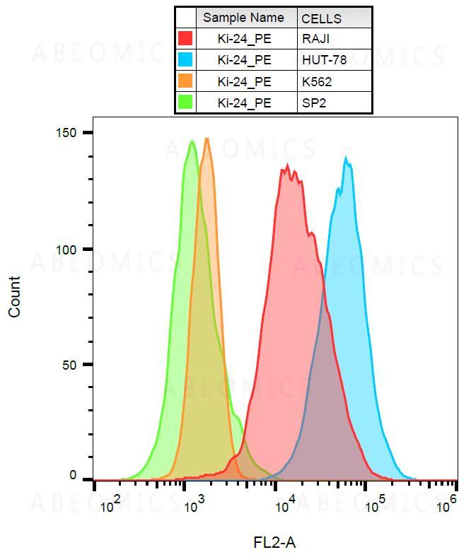 Figure 1: Surface staining of several cell lines with anti-human CD70 (Ki-24) PE.