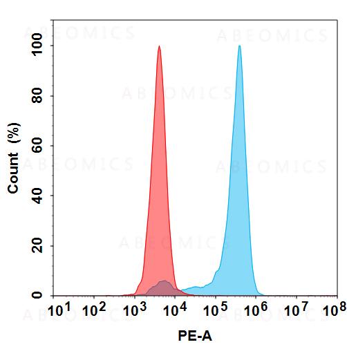 Figure 1. Flow cytometry analysis with 100 μl/test (1:350) PE-conjugated Anti-CDH6(AMT-707 biosimilar) mAb (Blue histogram) or isotype control mAb (Red histogram) on K562-CDH6 cells.