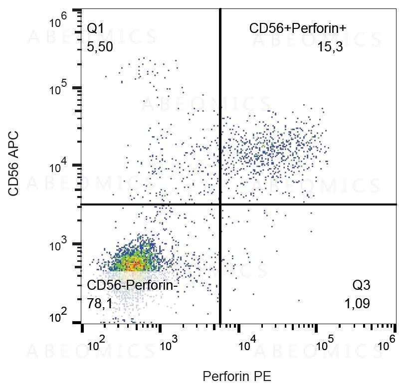 Figure 1: Intracellular staining of perforin in human peripheral blood cells with anti-perforin (dG9) PE.
