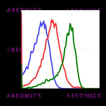 Fig-1: Flow cytometric analysis of Jurkat cells secondary antibody only negative control (blue) or untreated (red) or treated with anisomycin (green) using Phospho-ATF-2 (Thr71) antibody ATF2T71-G3 at 0.1µg/mL.