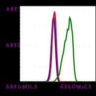 Fig-1: Flow cytometric analysis of U937 cells unstained and untreated cells as negative control (blue) or untreated (red) or treated with IFNa IL4 and PV (green) Phospho-Btk (Tyr223) antibody, BtkY223-B4 FITC conjugate.