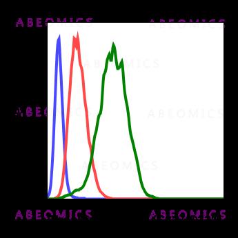 Fig-1: Flow cytometric analysis of Daudi cells secondary antibody only negative control (blue) or untreated (red) or treated with IFNa + IL-4 + pervanadate (green) using Phospho-MEK1/2 (S217/221) antibody MEK12S217S221-H2 0.01 µg/mL.