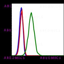 Fig-1: Flow cytometric analysis of Hela cells unstained imatinib treated cells (blue) or stained treated with imatinib (red) or with pervanadate (green) using phospho-PLCg1 (Tyr783) antibody PLCg1Y783-C4 FITC conjugate.