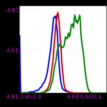 Fig-1: Flow cytometric analysis of U937 cells unstained U0126 and SB20350 treated cells (blue) or stained and treated with U0126 plus SB20350 (red) or treated with TPA plus calyculin A (green) using phospho-S6 ribosomal protein (Ser235/Ser236) antibody S6S235S236-R3A2 FITC conjugate .