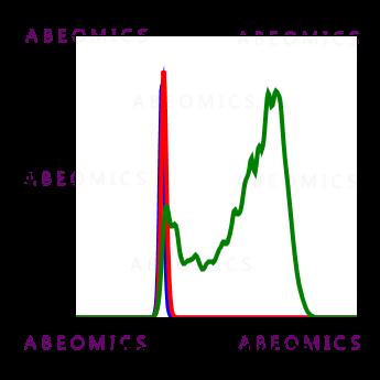 Fig-1: Flow cytometric analysis of Ramos cells secondary antibody only negative control (blue) or untreated (red) or treated with pervanadate (green) using Phospho-Shp1 (Tyr536) antibody Shp1Y536-2A7 at 0.1 µg/mL.