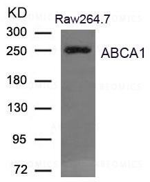 Figure 1: Western blot analysis of extract from Raw264.7 cells using ABCA1 Antibody 35-1844