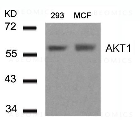 Figure 1: Western blot analysis of extracts from 293 and MCF cells using AKT1(Ab-450) Antibody 35-1722 .