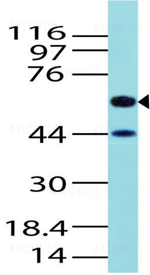 Fig-1: Western blot analysis of ALK1. Anti-ALK1 antibody (11-7528) was used at 4 µg/ml on Jurkat lysate.
