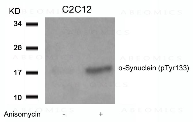 Figure 1: Western blot analysis of extracts from C2C12 cells untreated or treated with Anisomycin using a-Synuclein(Phospho-Tyr133) Antibody 35-1260 .
