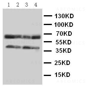 Figure 1: Anti-CCR5 antibody(39-2031). Western blotting: Lane 1: COLO320 Cell Lysate , Lane 2: MCF-7 Cell Lysate, Lane 3: SMMC Cell Lysate, Lane 4: JURKAT Cell Lysate.