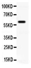 Figure 1: Anti-KCNN antibody(39-2053). Western blotting: Lanes: Anti KCNN 39-2053 at 0.5ug/ml. WB: HUT Whole Cell Lysate at 40ug. Predicted band size: 60 kDa. Observed band size: 60 kDa.