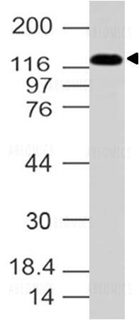 Fig-1: Western blot analysis of AP3 Delta. Anti-AP3 Delta antibody (11-8086) was used at 4 µg/ml on 293 lysate.