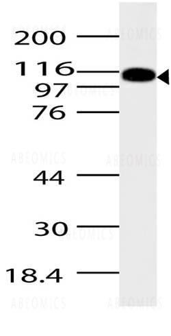 Fig-1: Western blot analysis of ASAP2. Anti-ASAP2 antibody (11-8068) was used at 4 µg/ml on Pancrease lysate.