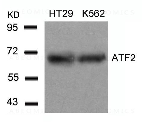 Figure 1: Western blot analysis of extracts from HT29 and K562 cells using ATF2(Ab-71 or 53) Antibody 35-1388 .