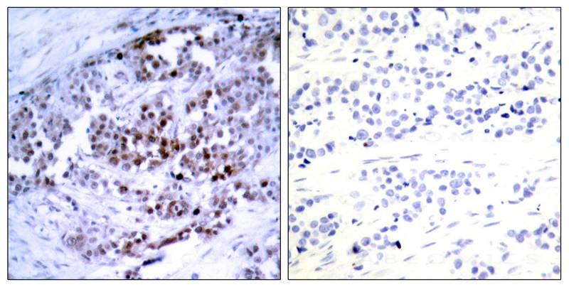 Figure 1: Immunohistochemical analysis of paraffin-embedded human breast carcinoma, using BCL-2 (phospho-Ser70) antibody (35-1063 ).