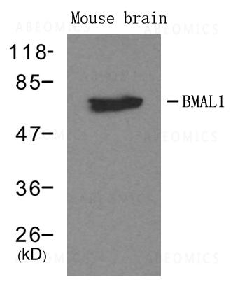 Figure 1: Western blot analysis of extracts from mouse brain tissue using BMAL1 Antibody 35-1669 .