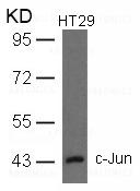Figure 1: Western blot analysis of extracts from HT29 cells using c-Jun(Ab-93) Antibody 35-1379 .