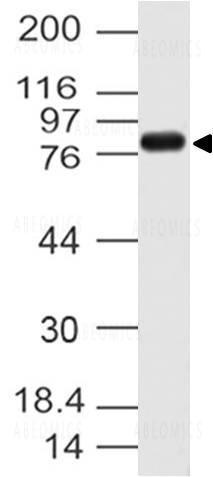 Fig-1: Western blot analysis of Cactin. Anti-Cactin antibody (11-3026) was used at 4 µg/ml on HCT-116 lysate.