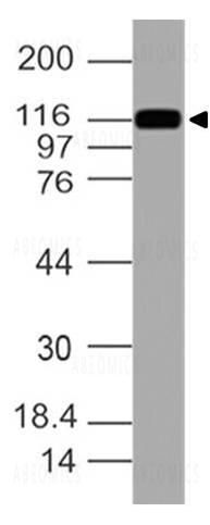Fig-1: Expression analysis of Cadherin-17. Anti-Cadherin-17 antibody (11-7542) was used at 1 µg/ml on h Intestine lysate.