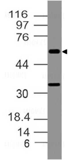 Figure-1: Western blot analysis of Caspase-10/FLICE2. Anti- Caspase-10/FLICE2 antibody (20-1049) was used with 1:1000 dilution on Hela lysate.