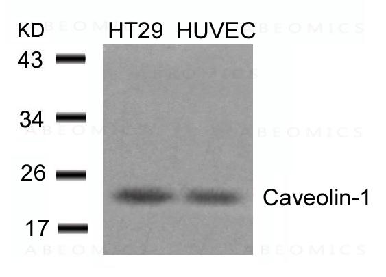Figure 1: Western blot analysis of extracts from HT29 and HUVEC cells using Caveolin-1 (Ab-14) Antibody 35-1464 .