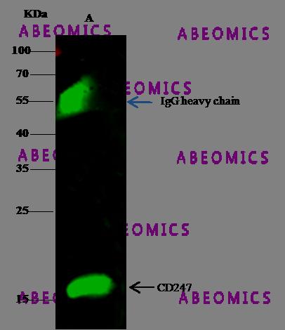 CD247, also known as CD3-ZETA, belongs to the CD3Z/FCER1G family. It contains 3 ITAM domains. As a -cell receptor zeta, CD247 forms the T-cell receptor-CD3 complex together with T-cell receptor alpha/beta and gamma/delta heterodimers, and with CD3-gamma, -delta and –epsilon. The zeta chain plays an important role in coupling antigen recognition to several intracellular signal-transduction pathways. Low expression of the antigen results in impaired immune response. Two alternatively spliced transcript variants encoding distinct isoforms have been found for CD247 gene. Defects in CD247 can cause immunodeficiency due to defect in CD3-zeta. An immunological deficiency characterized by T-cells impaired immune response to alloantigens, tetanus toxoid and mitogens. CD247 may play a role in assembly and expression of the TCR complex as well as signal transduction upon antigen triggering.
