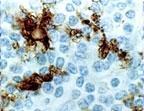 Fig:1 Formalin-fixed paraffin-embedded tissue section of human tonsil stained for CD40 expression using 20-1053 at 1:2000. Staining is seen in the dendritic cells. Hematoxylin-eosin counterstain.