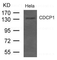 Figure 1: Western blot analysis of extract from Hela cells using CDCP1(CD318) Antibody 35-1707
