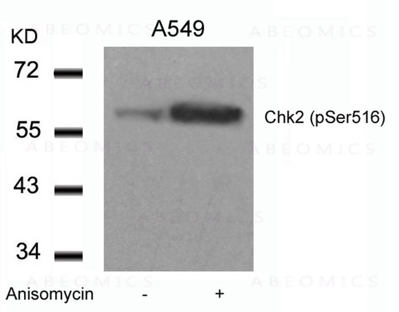 Figure 1: Western blot analysis of extracts from A549 cells untreated or treated with Anisomycin using Chk2(Phospho-Ser516) Antibody 35-1141 .