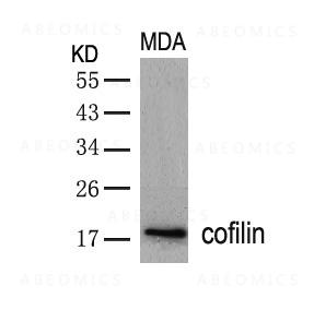 Figure 1: Western blot analysis of extracts from MDA cells using cofilin(Ab-3) Antibody 35-1507 .