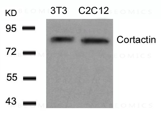 Figure 1: Western blot analysis of extracts from 3T3 and C2C12 cells using Cortactin(Ab-466) Antibody 35-1597 .