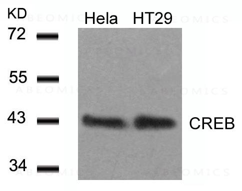 Figure 1: Western blot analysis of extracts from Hela and HT29 cells using CREB(Ab-129) Antibody 35-1598 .